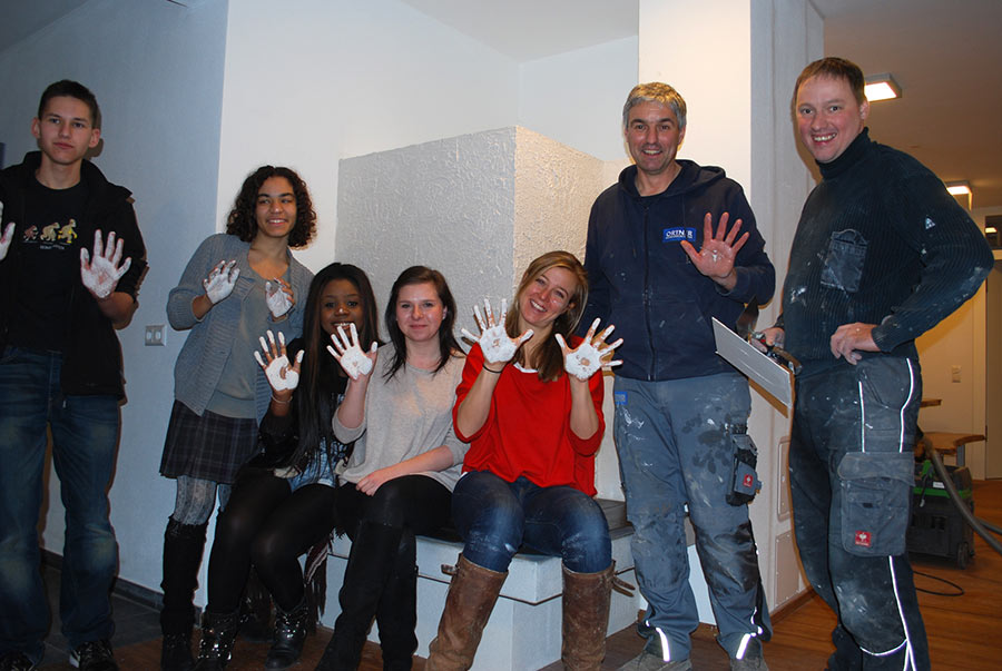 Während Nina und die Kids versuchen ihren Kalkputz wieder von den Händen zu bekommen, freut sich besonders Thomas Beck der Geschäftsführer von Artists for Kids: